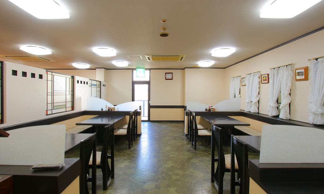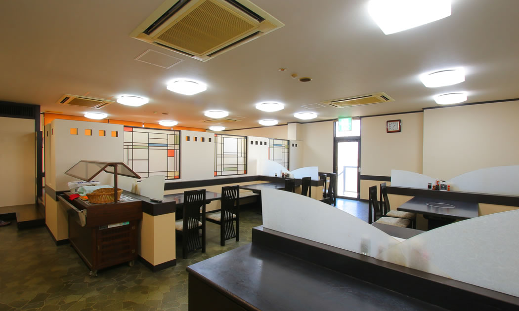 お食事は、夕食・朝食ともにレストランにてご提供いたします。夕食は手作りの素朴な日替わり夕食。朝食はバイキング形式となっております。テーブル席のほかに座卓もございます。ゆっくりとお食事をお楽しみください。